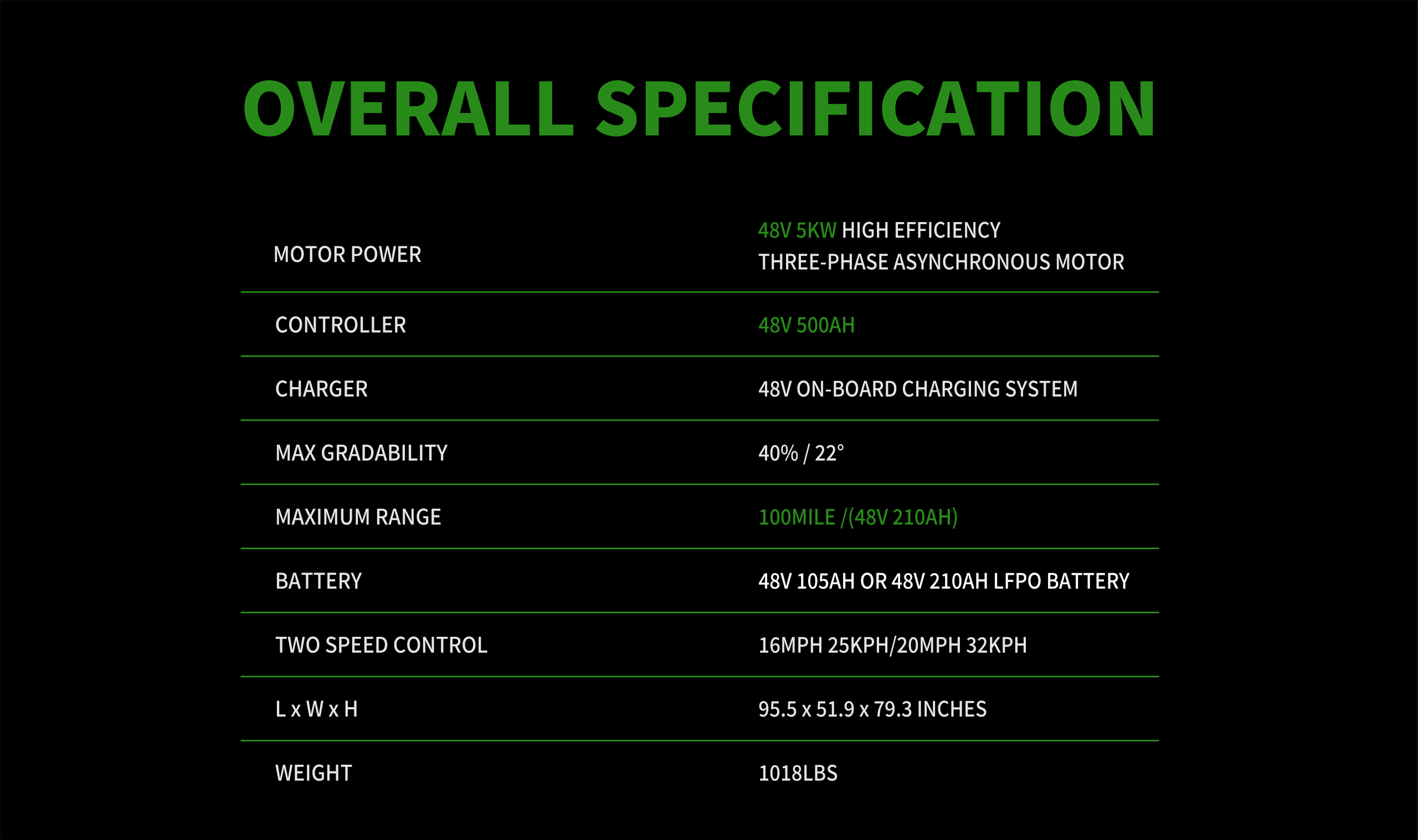 We offer 5-year warranty on our LiFePO4 Lithium Battery and 2-year warranty on other major parts and components. You can find warranty details in our Limited Lifetime Warranty Terms and Conditions.